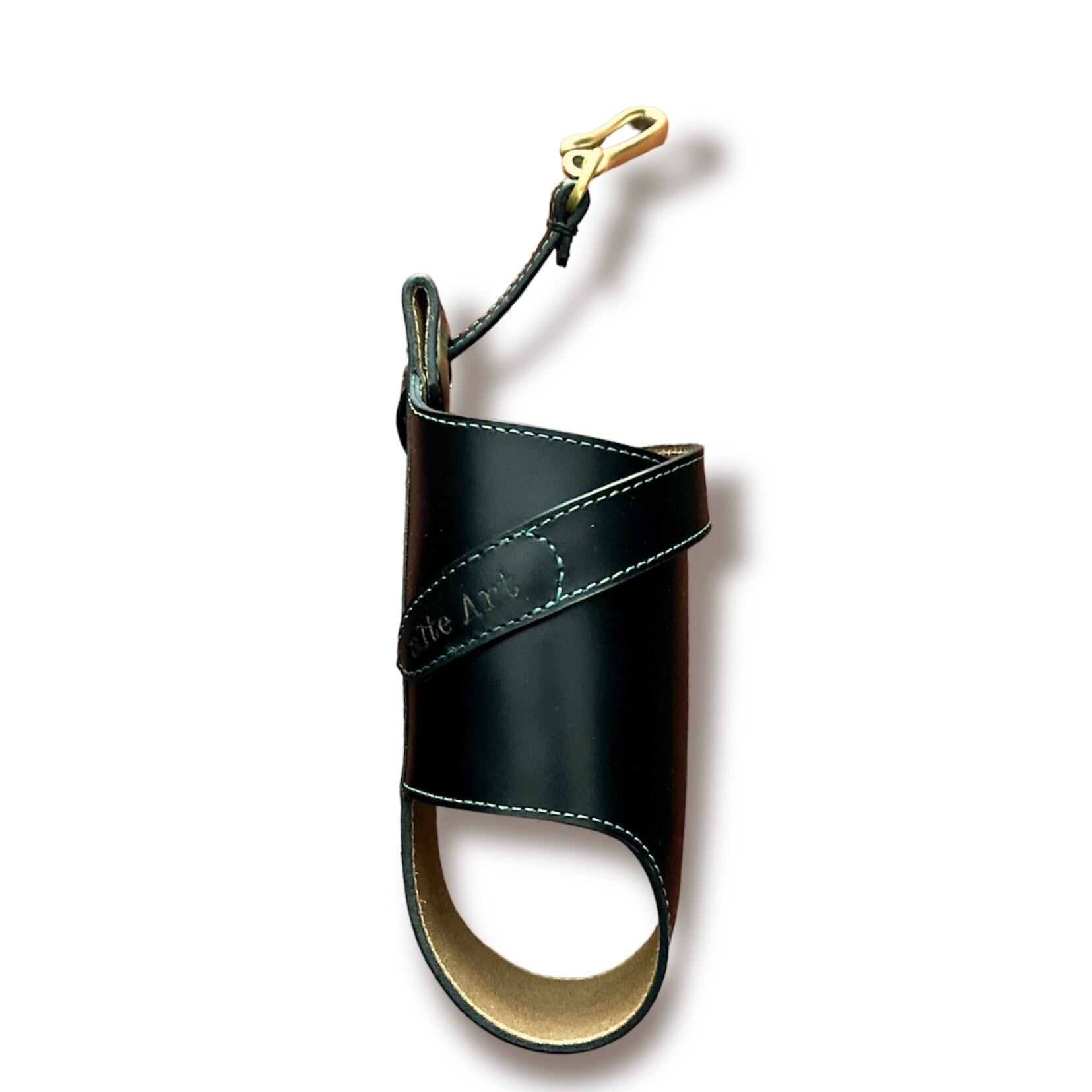 ブラックの革にターコイズグリーンのステッチが効いています