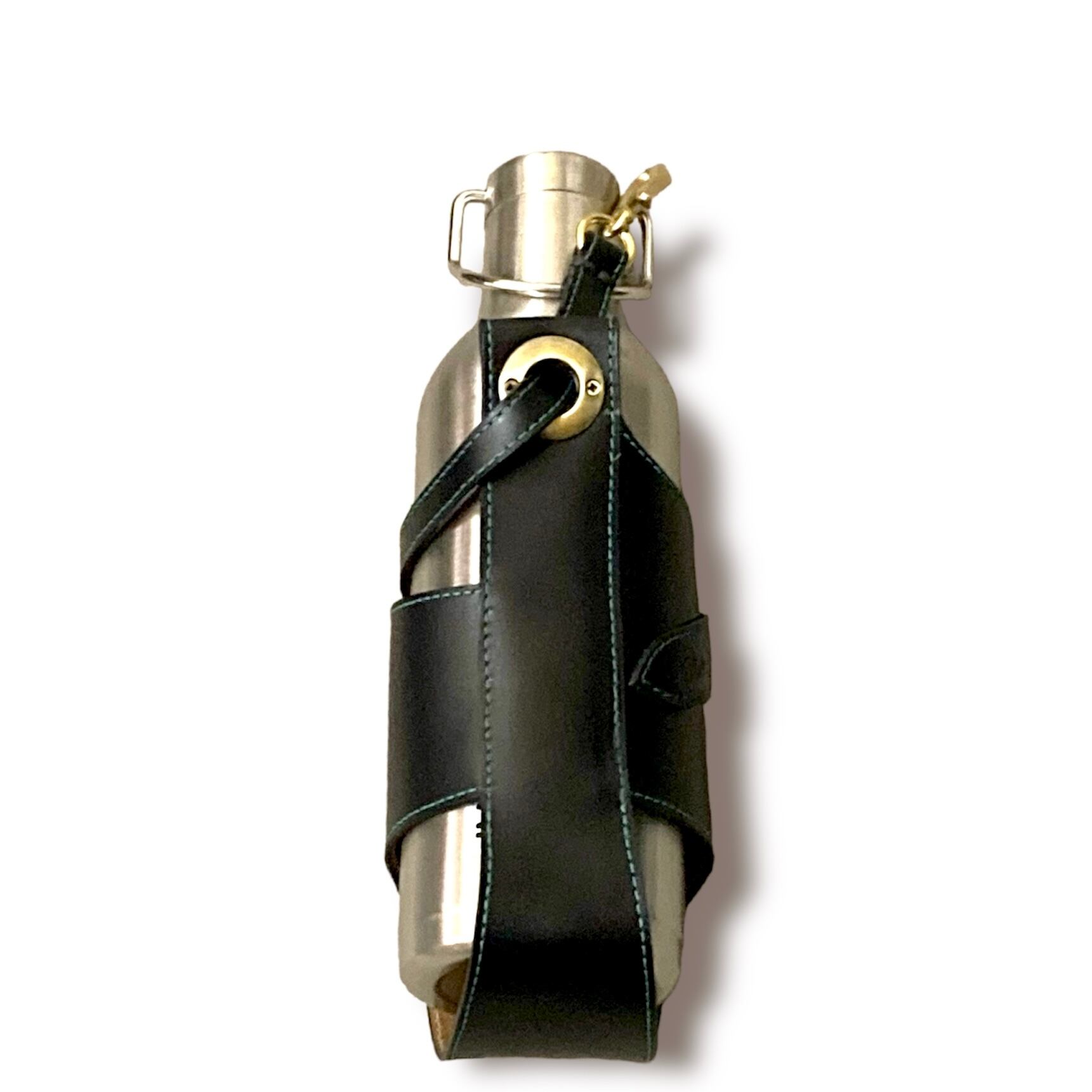 斜めに走ったベルトは、緩まり引っ張ると締まります(9・10枚目画像)。なので、金具を引っ掛けることにより、引っ張られボトルがよりしっかりホールドされます。デザイン面だけでなく機能面でも優秀です。