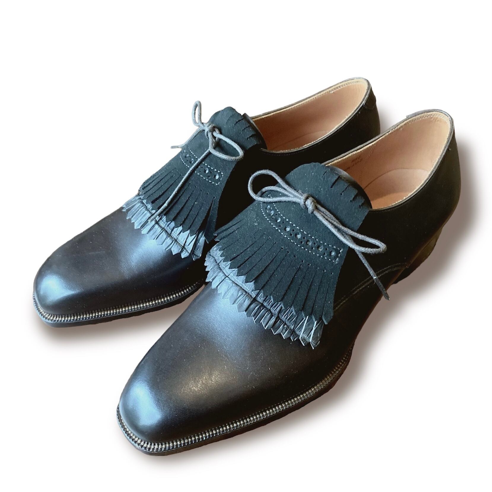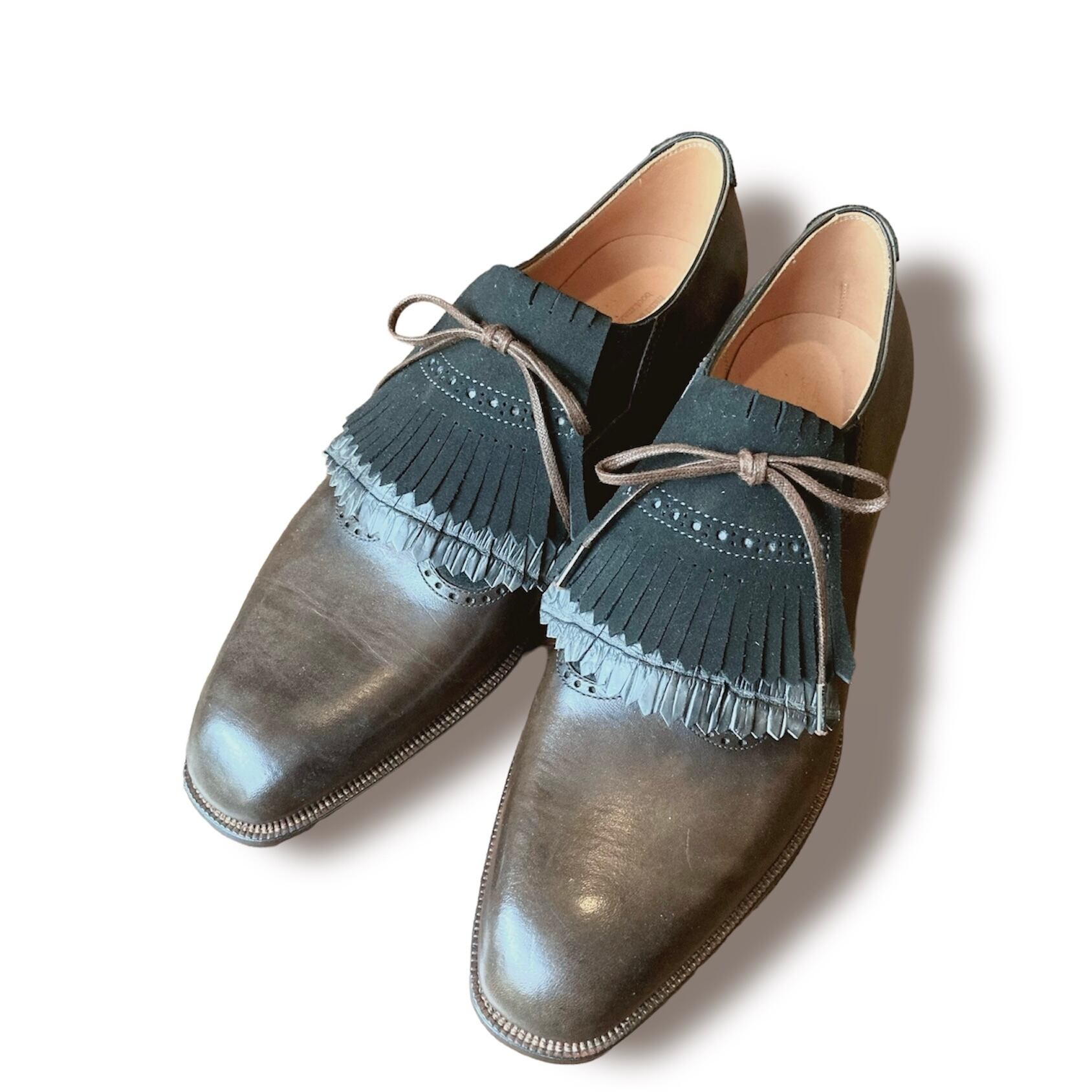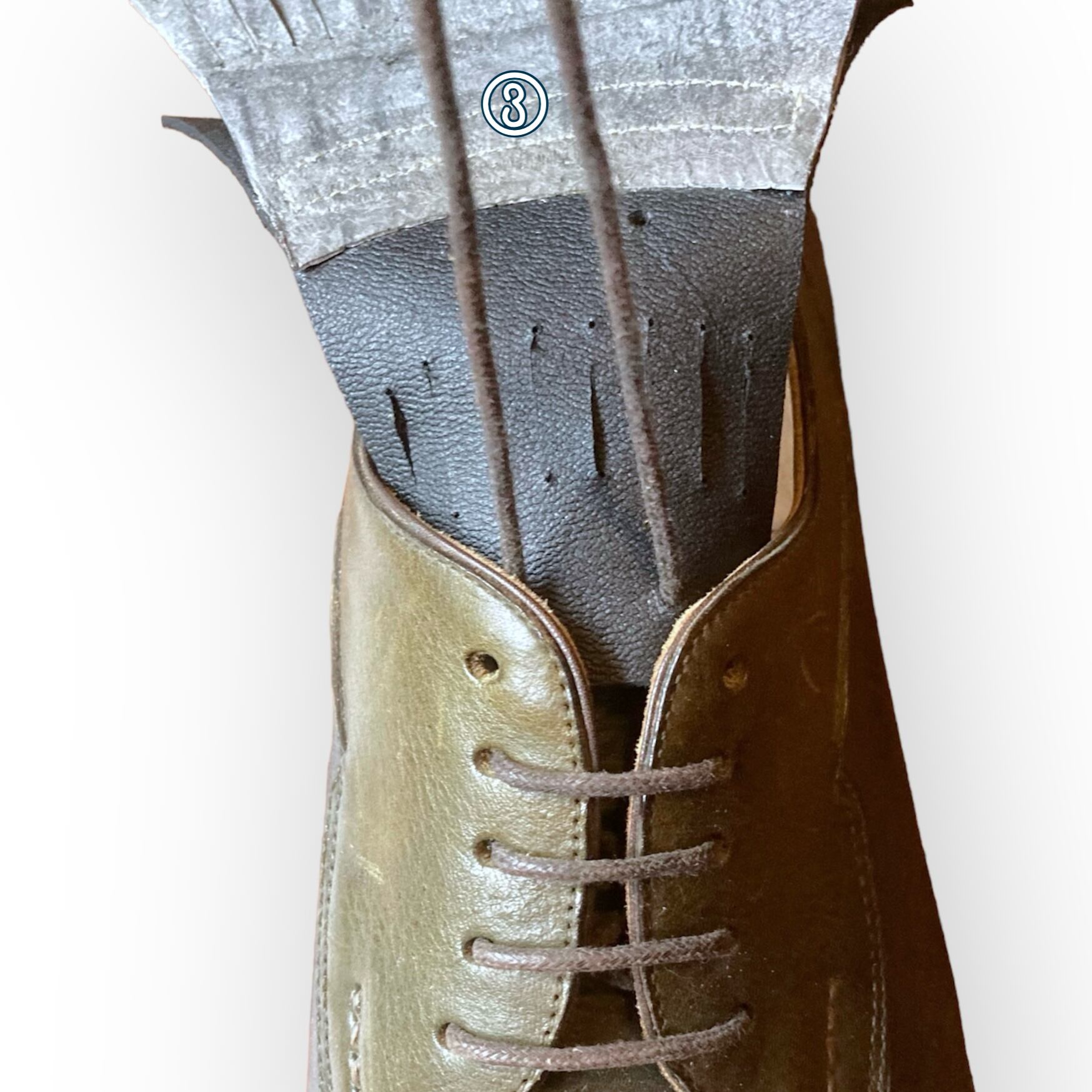 現在は装飾的な意味が大きくなりましたが、今でもその機能が生かされるゴルフシューズに多くみられる意匠になってます。