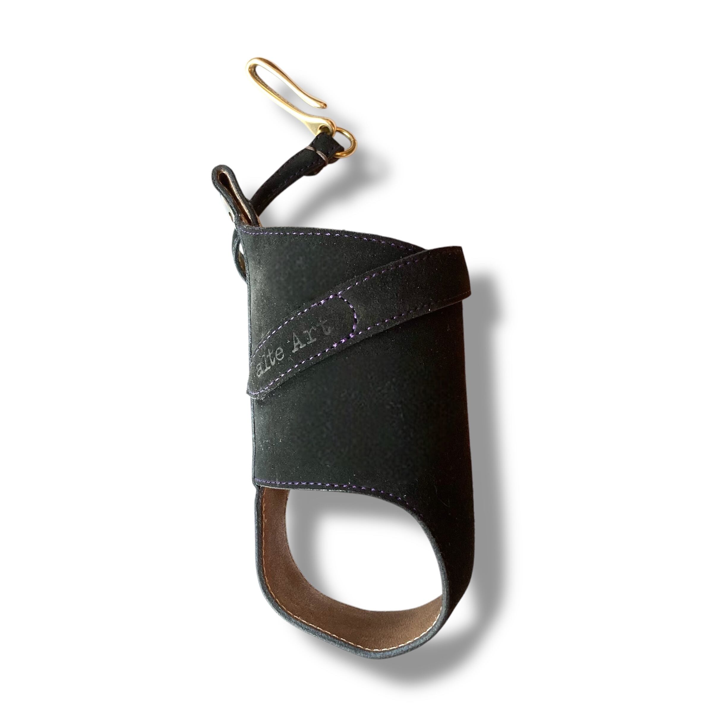 イギリス、C.F.Stead社のスーパーバックスエードのブラックを使用したボトルホルダー